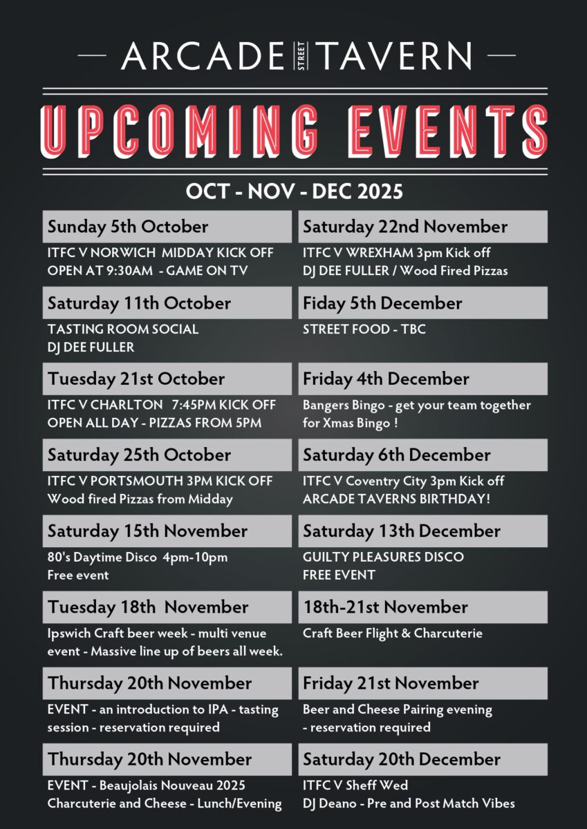 Keep up to date with all the latest news and events at Arcade Street Tavern by subscribing to our fortnightly mailing list.